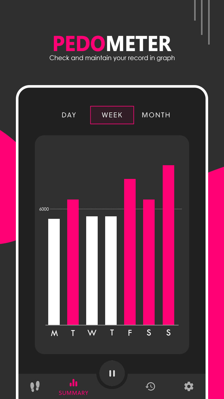 Don't worry about battery power consumption, this amazing pedometer uses the smartphone built-in sensor to count each step. No GPS tracking required, and you can start and pause it any time to save power.